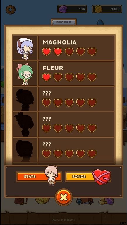好きな NPC とギフト アイテムのリスト (Postknight wiki のクレジット):