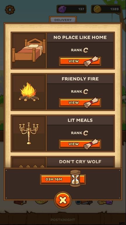 ポストナイト配達 メールボックスにあります すべての都市の。これらの配送では、アイテムを人に安全に配送する必要があります。 4 つの配達クエスト 一度にすべての都市で利用でき、6 時間ごとにリセットされます .クエストと同じように、宝石を支払うか、広告を見てすぐにリセットできます。 ポストナイト トークン そして胸 ゴールドと一緒にこれらの配達を行うことで入手できます と材料 配達中に敵がドロップします。 チェスト ランダムな素材が含まれています 、あなたに宝石を与えるかもしれません