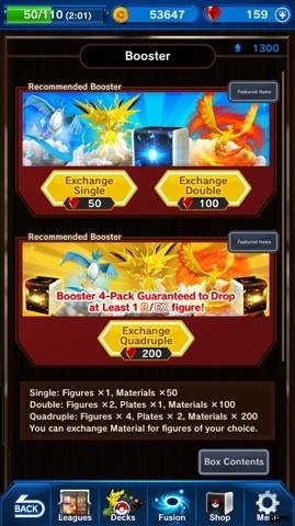 ご覧のとおり、これらの宝石で購入できるアイテム ポケモンフィギュアを提供します と便利な素材 . Sextuple (6-pack) Booster Packs ですべての宝石を集めて使うことをお勧めします。 少なくともEXレアフィギュアをドロップすることが保証されているため .