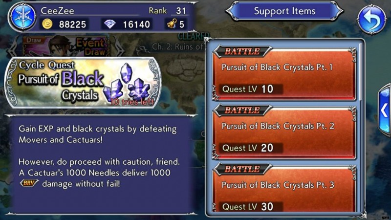 武器とアクセサリーは、キャラクターのレベルを上げることと同じくらい重要です。 ただし、このゲームでは、ガチャを通じて、お気に入りのキャラクターに最も強力で適切な武器とアクセサリーを入手するために宝石が必要です。 .スクウェア・エニックスの寛大さのおかげで、このゲームは非常に簡単に宝石を育てることができます.プレイヤーはジェムを獲得できます キャンペーン ストーリー モード、イベント ステージ、幻想の世界でステージをクリアすることから。