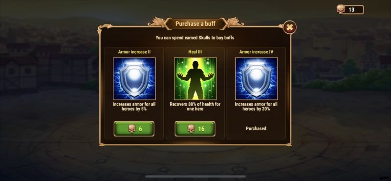 タワーのもう 1 つの良い点は、このモードを次の日にリプレイすれば、すべてのバトルをやり直す必要がないことです。勝った戦闘の数に基づいて、1 日あたり特定の数のレベルをスキップすることができます。たとえば、20 の戦闘に勝った場合、新しい日の最初の戦闘はレベル 21 あたりで行われ、自動的にレベル 1 から 20 までのすべての戦闘をスキップすることを選択した場合は 3 つのスカルと、戦闘の合間にチェストを開いてバフを購入する機会がまだ利用可能です。ただし、1 日を逃すと、レベルをスキップするオプションがなく、(完全に開始するのではなく) 全員の能力ポイントがすべてゼロの最初のレベルから開始する必要があります!