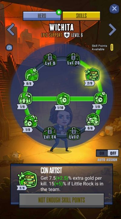 一部のスキルは、それらを学習したヒーローが別の特定のヒーローとペアになっている場合によりうまく機能します。たとえば、ウィチタの詐欺師を見てください。ウィチタがゾンビを倒すと、追加のゴールドが得られ、獲得したゴールドの量が2倍になりますリトルロックがチームにいる場合。これは一例ですが、このように強化される能力は他にもたくさんあります。