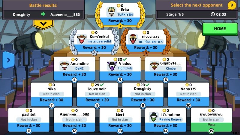 チケットで参加するトーナメントは、フードで参加するトーナメントよりも多くのリソースを提供します。トーナメントに参加すると、システムはあなたを他の 14 人のプレイヤーとマッチングします。このピラミッド型の画面から、戦う相手を選択できます。誰かと戦うことができるのは 1 回だけで、戦いで相手を倒すとトーナメント ポイントを獲得できますが、負けると 0 ポイントを獲得できます。勝利から得られるポイントの量は、対戦相手のチームをどれだけ早く倒したか、および戦闘時のトーナメントでの順位によって異なります。