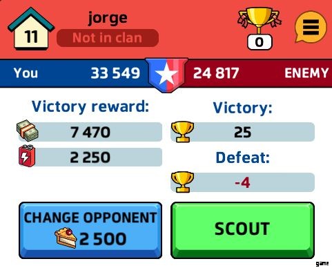 敵を選択すると、それらをスカウトできるようになります。これにより、彼らの家を見ることができます。この画面では、どのロジャーが攻撃に参加しているかを確認したり、ロジャーの場所でロジャーを調べたり、装備を確認したりすることもできます。これは、攻撃を続行するかどうかを決定するのに役立ちます。敵のアーセナルの調査には特に注意してください。忘れがちです。