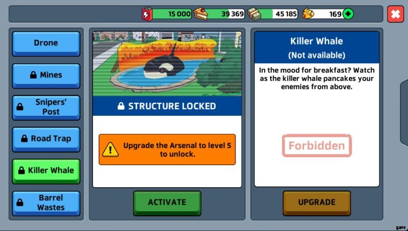 一度にアクティブにできる防御メカニズムは 1 つだけです。また、各防御メカニズムにはさまざまな種類があります。たとえば、アトミック ドローン、クライオ ドローン、トキシック ドローンを実行できます。アーセナルのさまざまな武器を有料でアップグレードすることもできます。これにはお金がかかり、多くの時間がかかりますが、それだけの価値はあります。