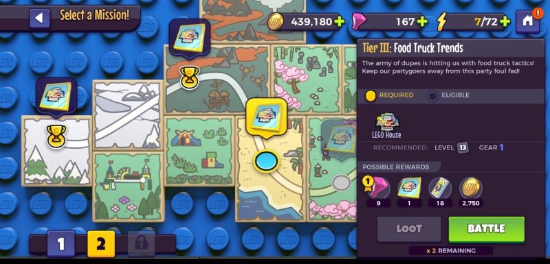 LEGO Legacy:Heroes Unboxed を使用すると、ヒーローが必要とするタイルやギアを簡単に探すことができます。ヒーロー ページでヒーローを選択したら、[Star Up] ボタンをクリックしてから [Find Tiles] ボタンをクリックしてキャンペーン レベルを表示し、運を試してそのヒーローのタイル シャードをさらに獲得することができます。まだ組み立てていないヒーローについても同じことが言えます。もちろん、一部のヒーローのタイルは、後のキャンペーン ステージでしか獲得できないか、ショップから偶然しか入手できません。