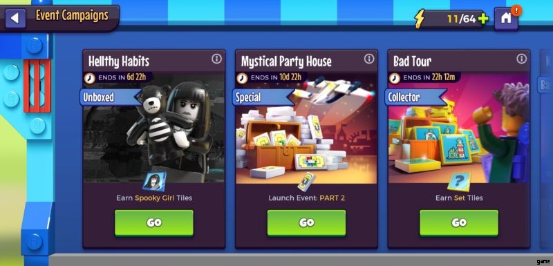 LEGO Legacy:Heroes Unboxed には、特別な報酬を得るために参加できるいくつかのイベントがあります。これらのイベントの一部は期間限定で利用可能であり、通常、キャンペーンやチャレンジのように難易度が高くなるステージが表示されます。いくつかは、最低レベル要件の背後にもロックされています.