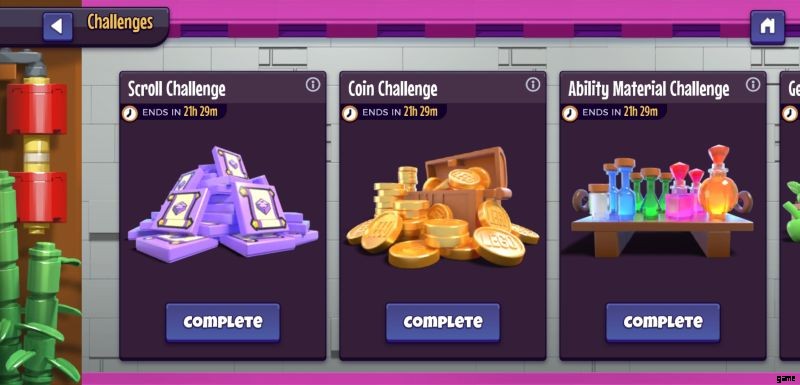 コイン チャレンジでは、大量のアップグレードに必要な膨大な量のコインが自然に保持されます。ギア チャレンジは、アタッカー向け、サポート キャラクター向け、タンクとヒーラー向けの 3 つのカテゴリに分かれています。スクロール チャレンジは、追加の XP スクロールを取得して、冒険に向かう前にヒーローのチームが最大レベルであることを確認するのに役立ちます。最後に、おそらく最も重要なのは、ヒーローのスキルをレベルアップするために必要なエリクサーを保持するアビリティ マテリアル チャレンジです。