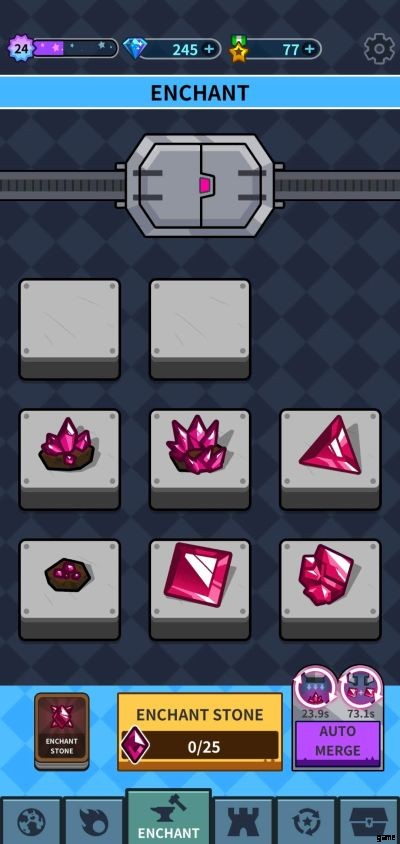 2 つの類似したアイテムをマージすると、より良いアイテムを取得できます。最初は 4 つのプラットフォームから開始するため、最初は多くのマージを行うことはできませんが、レベルが上がるにつれて、より多くのマージを使用できるようになります。より高度なエンチャント ストーンを作成したら、それを使用してカードをエンチャントします。どのカードが特別な扱いを受けるかは自動システムによって選択されますが、プレイヤーはブーストが適用されるヒーロー層を選択できます。システムは強化する必要のない下位のカードを選択する可能性があるため、ランダム ドローに注意してください。