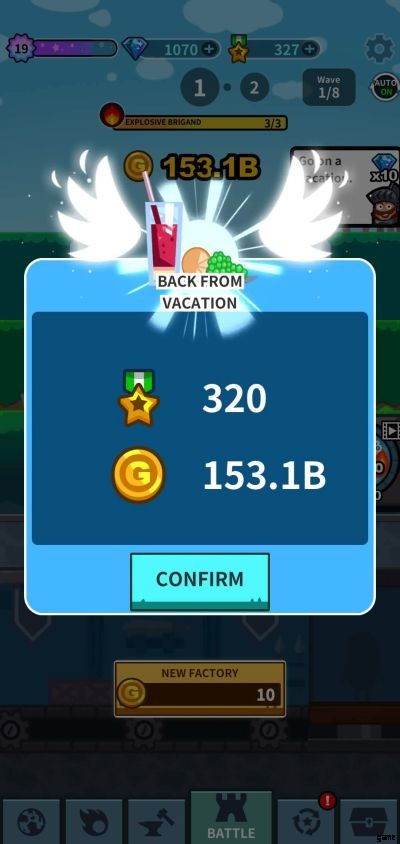 これは、いくつかの戦略を採用することで達成できます。まず、ゲームをプレイするのを少し休むことをお勧めします。戻ってきたときに、必要なゴールドで構成された素敵なオフライン バトル リワードが待っているからです。報酬は、ヒーロー ファクトリーから離れた時間によって異なります。最大の見返りを得るには、80 分間別のことを見つけてください。ゴールドを 2 倍にするために x2 ボタンを押すことを忘れないでください。ただし、広告を見る意思がある場合に限ります。
