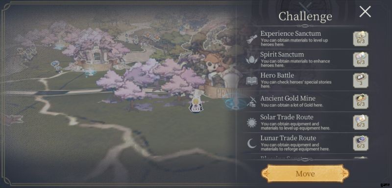 The Experience Sanctum is where you can obtain EXP scrolls to level up your heroes. Enhancement materials can be farmed from the Spirit Sanctum. Naturally, you will have a constant need for more gold so unlocking and battling through the Ancient Gold Mine becomes important.