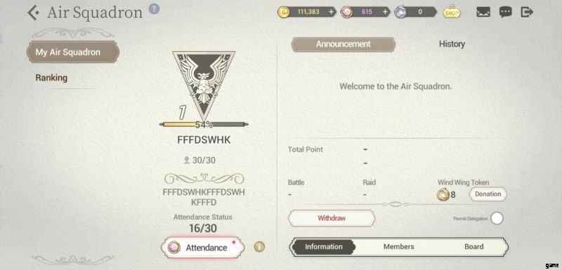 To start off, signing in for attendance earns you rewards and the more members sign in, the better rewards each one receives. If you can, donate as much to the air squadron as donations will contribute to the squadron’s growth and development, which ultimately brings in more perks for each members. Guild exclusive content, which you can see in the challenges, can be engaged in as soon as you join an air squadron.