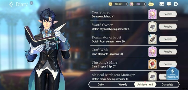 We have certainly plowed through a lot of the content and features in Exos Eroes that you need to spend time on to maximize your progress and your team’s growth but there are certainly more to take on. In any case, the daily and weekly missions, as well as the achievements you can earn more rewards from, all coincide with your typical daily grind. You can access these within your airship via the diary icon at the right side of the screen.