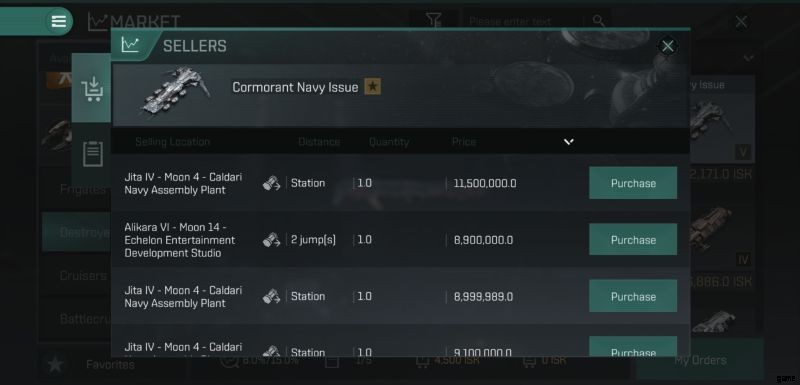 EVE Echoes の商品の価格は急速に変化し、ほとんどの商品は互いに非常によく似ていますが、平均的な価格リストとはかけ離れた非常に良い取引を見つけることができます。したがって、必要性の緊急性に応じて、代わりに多くの忍耐を行使し、かなりの量が立ち寄るのを待つことを選択できます。時間がかかるかもしれませんが、多くの場合、特に品質と価格のニッチな上位に位置する船やモジュールの場合、それは確かに価値があります.