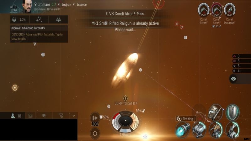 停止すると、タップする必要があるターゲティング アイコンが表示されます。利用可能なすべてのターゲットに自動ロックします。そこから、右上隅にあるターゲットのリストを見てください。最も近い (KM 単位の) ターゲットをタップし、[フォーカス ファイア] ボタンをクリックします。そこから、画面の下部中央で船の状態を監視します。これにより、船のブースターを有効にする必要があるかどうか、いつ有効にする必要があるかがわかります。