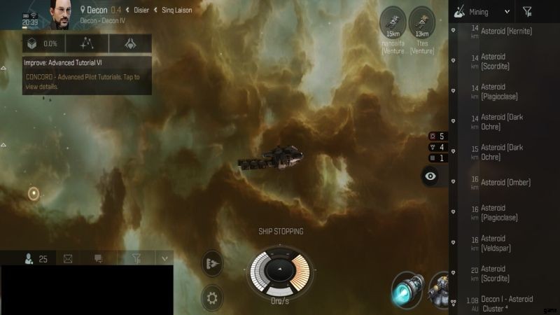上のスクリーンショットの右上隅を見てください。そこに別の船があることに気づきましたか?通常、あなたと他の人は同じ小惑星を採掘できます。それはたくさん起こります。名前に Venture や鉱山船として認識できるものがない場合は、そこから足を踏み出す準備ができているはずです。