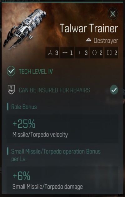 まず、名前の下にあるタイプを確認します。この場合はデストロイヤーです。その下には、船に関するさまざまなことを表すアイコンのセットがあります。 1 つ目 (上には表示されていません) はドローンの容量です。次に武器の容量です。次に、ミッド スロットとリグ スロットです。保険は、船が破壊された場合に船を取り戻すことができるかどうかを知らせます。船を取り戻すだけです。リストを下にスクロールすると、ボーナス リストと、船を売却できる金額など、船に関するその他の情報が表示されます。