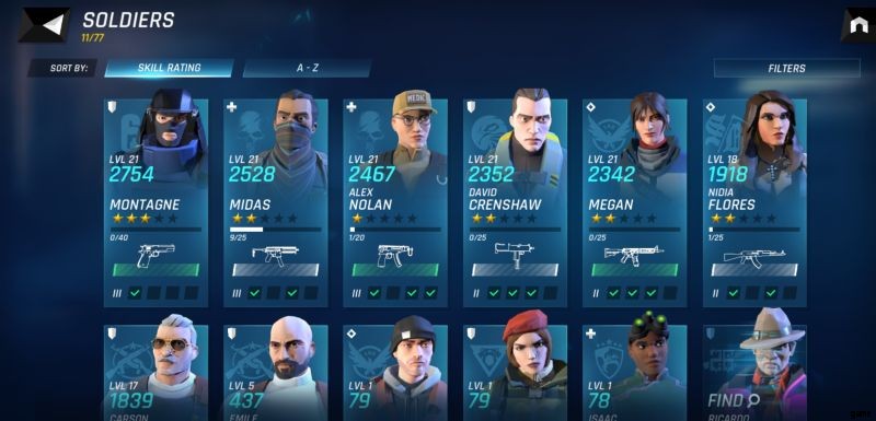 Tom Clancy's Elite Squad には、収集してアップグレードできる 77 人のユニークなヒーローとヴィランがいます。追加のユニットを確保して最初の 5 人の工作員に交換するにはしばらく時間がかかるかもしれませんが、基本的なエリート部隊のために得られるメンバーの選択は実際にはかなりまともです.キャンペーンやその他のゲーム モードを進め、より多くの兵士を募集するためのリソースを獲得し続けるときは、さまざまな役割やスキルなどの詳細に注意を払うようにしてください。指揮する相乗的なチーム。