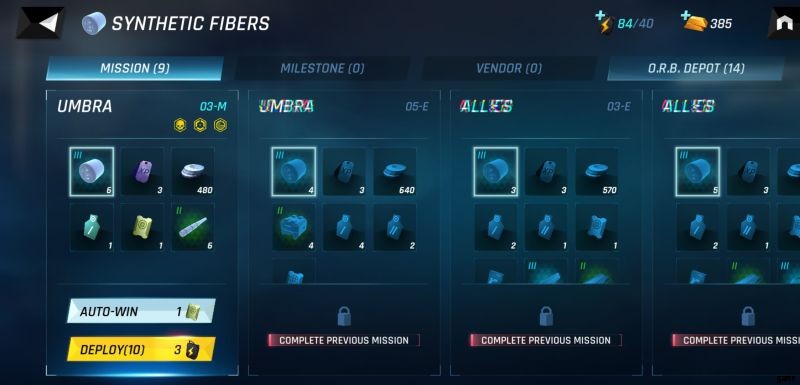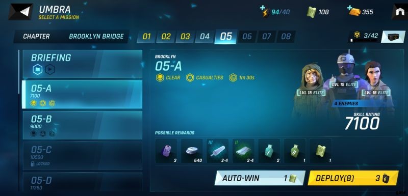 現在、ファーミングできるインテリジェンスを持っている工作員を使用している場合は、粉砕が進む限り、それが優先目標になるはずです。 「検索」ボタンをタップするだけで、インテルを獲得できるアクセス可能なエリアを確認できます。見つけたら、オートウィン機能を利用するだけで、ステージクリアが早まります。これは、ステージに挑戦できる最大試行回数まで行うことができることに注意してください。