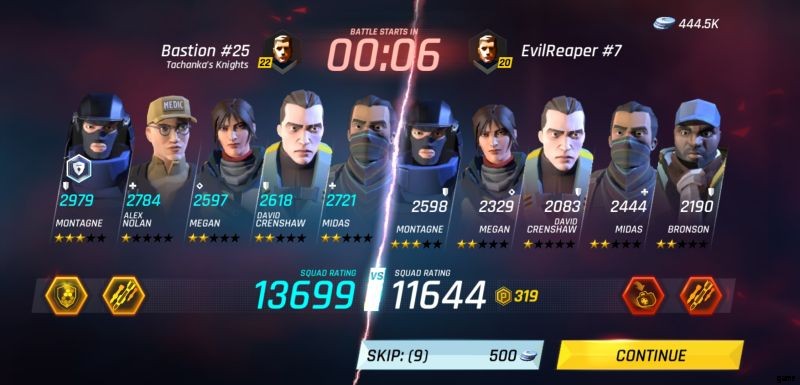 進行、特にエリート部隊の強化に関しては、ゲームプレイの早い時間にはるかに高速です。ただし、Tom Clancy's Elite Squad のコンテンツをさらに進めていくと、分隊のレベルとそれぞれのアップグレード ステータスを考えると、敵ユニットが力を増していくペースを簡単に合わせることができないため、進行が少し難しくなる可能性があります。