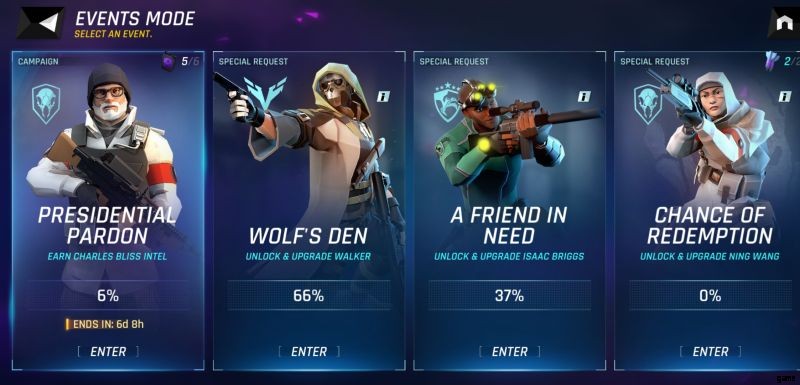 5 つの主要工作員のアップグレードにリソースを集中することをお勧めしますが、これらのゲーム モードで使用できるユニットの種類が非常に制限される可能性があるため、毎日の ops は少し厳しいものになります。早い段階で、特定のゲームモードのユニットをまだ獲得していないことに気付くかもしれません。または、1 つまたは 2 つ持っている場合、それらはおそらくレベル 1 のままで、ほとんど何も装備していないことに気付くかもしれません。余分なユニットをアップグレードする必要がある場合は、必要に応じて調整してください。