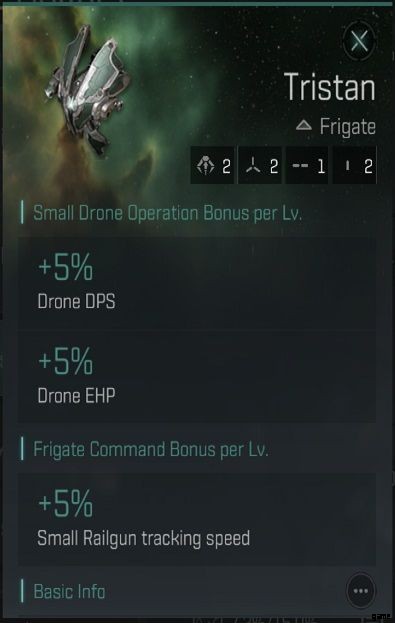 ドローン スロットのペアと 2 つの小さなレールガンを使用すると、ほとんどの人が考えているよりも多くのことができます。ドローンの EHP ボーナスにより、この船はさらに頑丈になります。はい、これは他のほとんどの小型船と同様に高速の小さなバガーです!トリスタンにウォリアー 1 体とホーネット 1 体を装備することから始めます。良いダメージミックスです。次に、小型レールガンを2つ取り付けます。ほとんどの MK5 以上で十分です。サイド スロットには、Energy Nosferatu (NOS) のペアまたは Stasis Webifier (Webs) のペアが必要です。それは、あなたが知っている戦術の使用に依存します。この船にはリグ スロットがないので、対処することが 1 つ少なくなります!