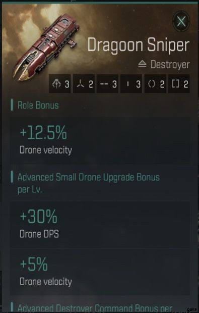 ドローン ボートは、凧揚げや引きずる戦術が得意です。ただし、アドバンスト デストロイヤー コマンド ボーナスを確認すると、2 つの NOS と 1 つの Web の組み合わせが効果的です。繰り返しますが、フィッティング後に範囲を確認して、いつアクティブ化する必要があるかを確認してください。