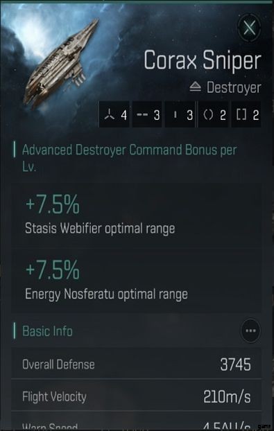 EVE Echoes に適したデストロイヤーの最初の例は Corax Sniper です。判明したように、スナイパー クラスの船はクラス/レベルで最高です。トリックは、自分の役割に応じて船を取得することを忘れないことです.