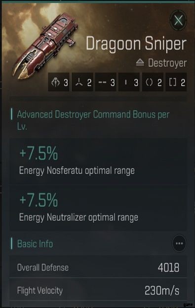 次の EVE Echoes のサンプル Destroyer は、Dragoon Sniper です。これは、ドローン ボートの損傷の多用途性への素晴らしい出発点となる Amarr 船です。 Amarr 船であるため、高いスロットには大砲が適しています。あなたに追いつくターゲットのためにそれらの使用を予約してください。