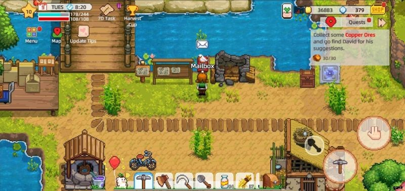 Events take place in Harvest Town from time to time and when they do make sure you check to see if there are any rewards available you can grab. For example, right now an event called Harvest Cup is going on. Tap on its icon that is located in the upper left side of the display to see if there’s anything available for you every day.