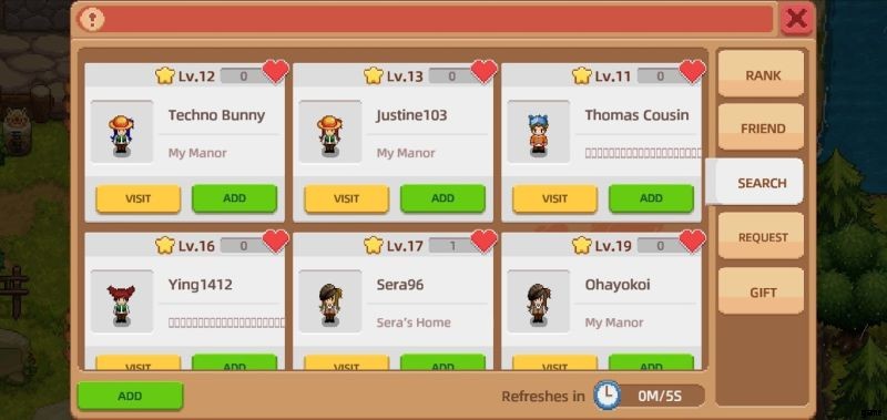 Harvest Town has a social component where you can send friend requests to other players in the game. It’s a good idea to do so, but keep in mind that you can visit other farms without being friends with the owners.