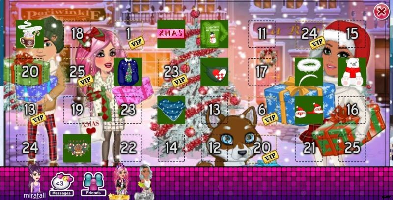 ホリデー シーズンが近づいています。ディスプレイの左側にある赤いギフトをタップして、毎日新しいパズルのピースを明らかにしてください。 1 つ目から始めて、2 つ目、3 つ目と続きます。各要素の下には、アクセサリーやクリスマスをテーマにした装飾や衣類など、新しくエキサイティングなアイテムがあります。これらはすべて無料で獲得できます。毎日チェックして、入手可能なすべてのギフトと引き換えることを忘れないでください。