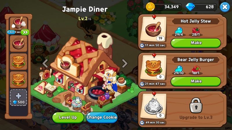 クッキー ハウスのアップグレード、キャッスル LV、ランドマークのアップグレード、テリトリーの拡大の間に、ハウスのアップグレードがレアリティを使う最も便利な方法です。アップグレードごとに、現在生産できるスター ゼリーの最大量が 2 倍になるため、1 つアップグレードするだけでも、レアリティ コストに見合う大きなブーストとなります。その後、城のアップグレードが 2 番目の優先事項になります。理由は 1 つだけです。より高いレベルの城はより多くの家を意味し、それらをさらにアップグレードすることができます.