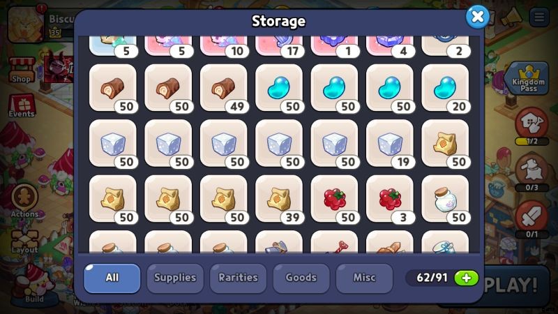限られた在庫スペースしかありません。特定のレベルの後、ゲームは倉庫をアップグレードするために非常に法外な量の宝石を要求し始めます。これは、少なくともクッキーに縛られている早い段階で、費やした宝石の価値はありません.特定の素材がスペースを取りすぎていることに気付いた場合は、恐れずにそれらを販売するか、それらを使用してより高いティアの素材を作成することをお勧めします。または、港にいる Touc に渡してください!