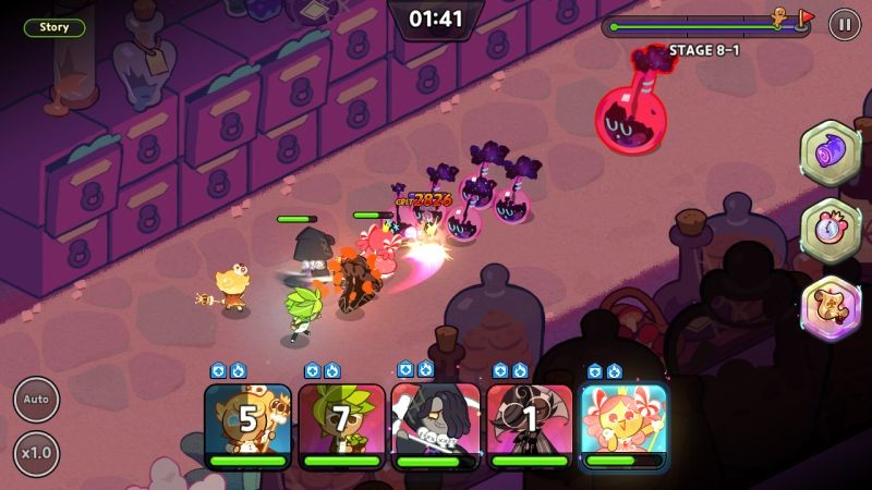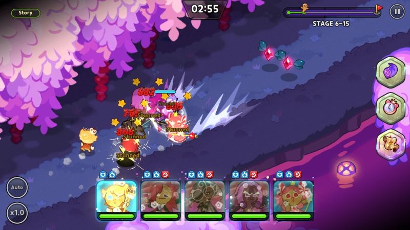 突進してくるチャージャー系の敵を見かけたら、火を止めろ!クッキーのスキルを無駄にしてクールダウンに送る気絶は、パーティーを完全に殺すための素晴らしい方法です.攻撃を受けさせるか、前方の Cookie にノックバック スキルでノックバックさせます。その後、通常はしばらく時間がかかる次の気絶に向けて巻き上げている間に、核攻撃を行うことができます。