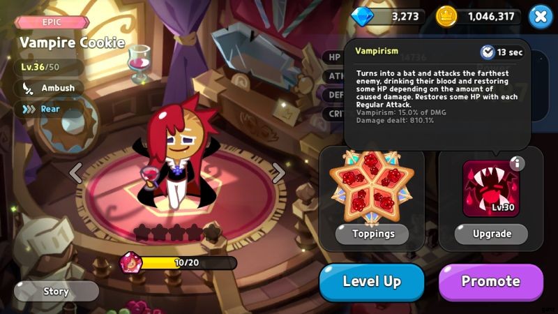 ヴァンパイア クッキーを使用している場合は、彼を隠して、ヒーラーを探すミサイルを持っていることを敵に知られないようにします。リコリスも非常に強力なクッキーですが、エスプレッソほど一般的ではないため、非表示にするのに適しています。エスプレッソが他のエスプレッソほど強くない場合に備えて、ザクロとエクレア クッキーも隠しておくのに適しています。この 30% の ATK バフは、戦闘だけでなく、攻撃するかどうかの敵の選択にも影響を与えます。