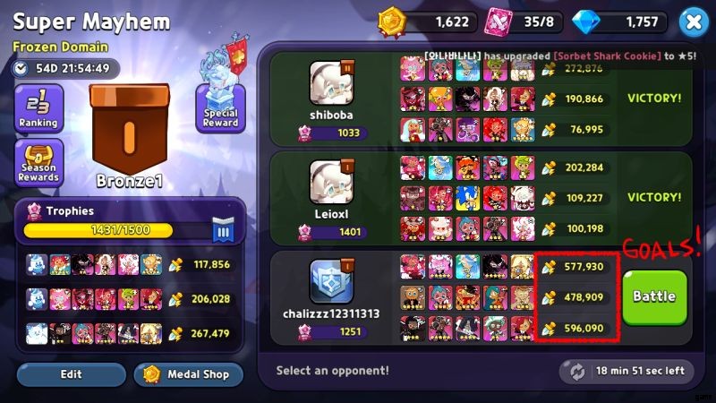 スーパーメイヘムは自動のみの PVP モードで、最強のクッキーを 15 個取り、5 人ずつの 3 つのチームに編成します。古いルールでは、1 つのチームの 15 個のクッキーがすべてなくなるまで、15 個のクッキーが敵チームと戦うというものでした。しかし今では、勝利したチームが死ぬまで続けて製粉所の次のチームを呼び出すのではなく、観覧席を見守るために出発するため、殺人的な事件はやや少なくなります。 PvP に関するヒントはここでも有効です (Sea Fairy を隠そうとすることさえしないでください。Mid の隠しスロットであることは誰もが知っています)。スーパーメイヘムに固有の注意事項を次に示します。