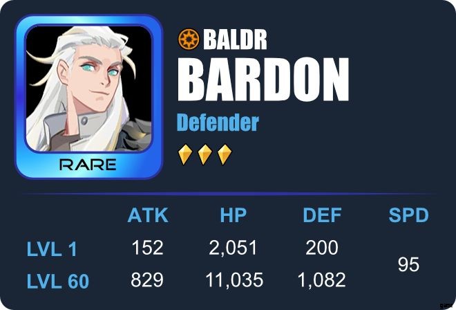 Bardon の DEF は、特にすべての味方にも影響を与える Rise to Honor スキルの DEF Up バフを使用する場合に、強力な敵の攻撃を処理することを可能にします。彼の Light Shield の気絶のチャンスと Honorbound の Taunt のチャンス (Ascension でアップグレードすると) は、敵を無力化するのに役立つ可能性があります。