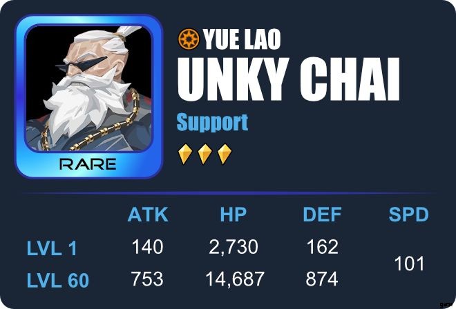 Unky Chai may seem like a weak Esper, with his low ATK and DEF, but he makes for a very capable Support, helping your team by granting ATK Up and C. RATE Up buffs and reducing ability cooldowns.