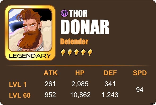 DEFをダメージに変換するDonarの能力により、彼は攻撃力が高く、倒すのが難しいDefenderになります。彼の攻撃ダウン デバフ、免疫バフ、チームの DEF を 30% 増加させるキャプテン アビリティを組み合わせることで、彼はほとんど貫通できなくなります。パッシブがアクティブなときに彼を攻撃すると、防御力が増加し (最大 5 スタック)、次のターンの開始時にすべての敵にさらに壊滅的な打撃を与えることができます。デバフで彼を動けなくすると、彼はひるむかもしれませんが、それは彼が 2 ターン持続する免疫バフをアクティブにする前に敵がそうすることができた場合です.