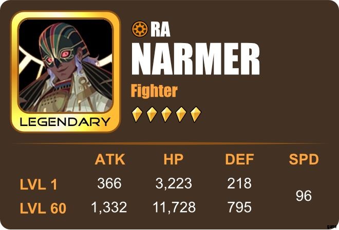 Narmer (Ra) | 366 | 1,332 | 3,223 | 11,728 | 218 | 795 | 96 |