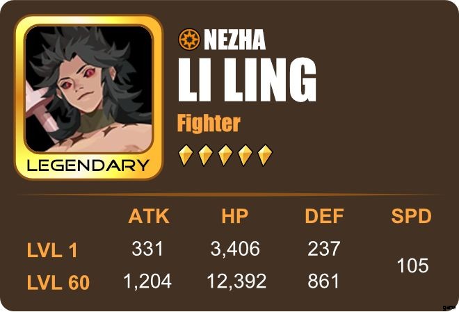 Li Ling (Nezha) | 331 | 1,204 | 3,406 | 12,392 | 237 | 861 | 105 |