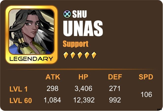 However, the rest of his stats are way lower compared to his ATK which makes him easy to kill and too slow for his turns. He may be best paired with a Support that can increase his SPD or one that can lower cooldowns. Defenders could also keep him from dying while Controllers could slow down his enemies so he could catch up and play his turns.