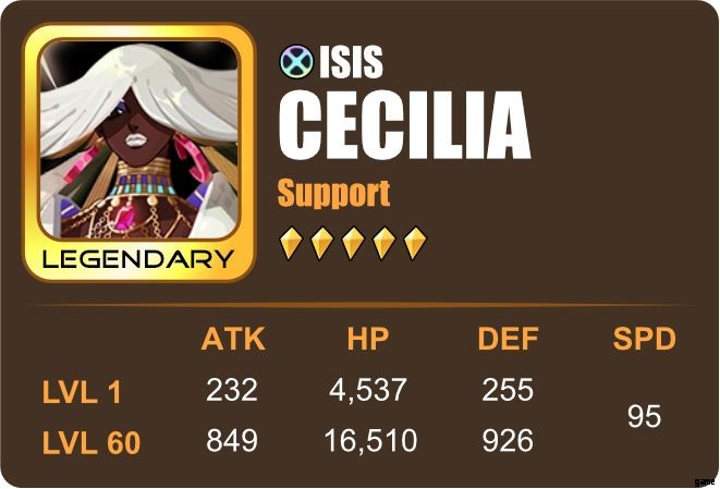 Triggers / Cooldown | — | When Cecillia dies (triggered only once) | 4 turns (max lvl) |
