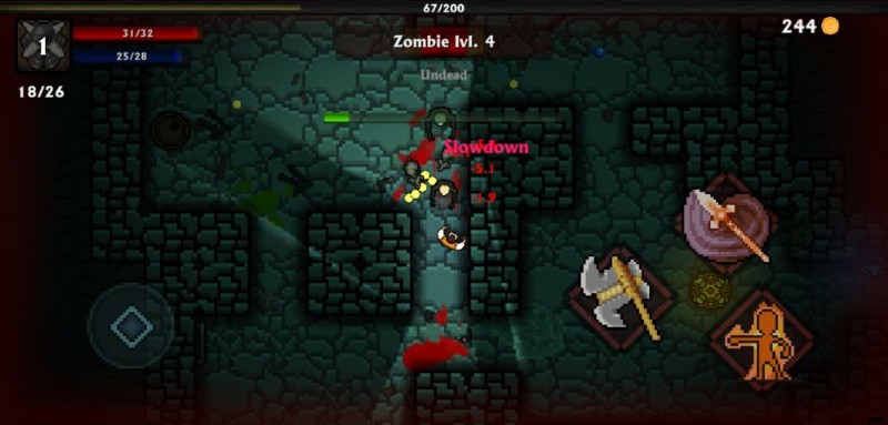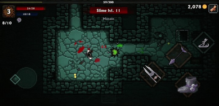 Pocket Rogues が従来のターンベースの移動スキームに準拠していないことを考えると、このゲームでの戦いははるかに自由です。横に移動したり、敵からのスワイプを避けたり、敵が多すぎるときに離れたりすることができます。移動中の戦闘は非常に重要です。