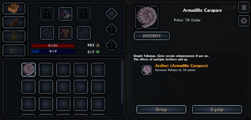 ただし、死ぬことの良くない点の 1 つは、ダンジョンで見つけたすべてのアイテムを失うことです。ただし、次の実行時に開始するための青写真として存在するアイテムがあります。幸運を祈ります。