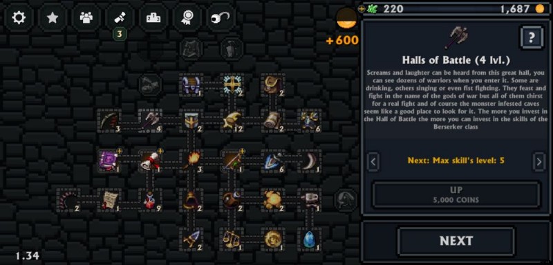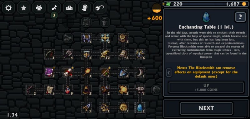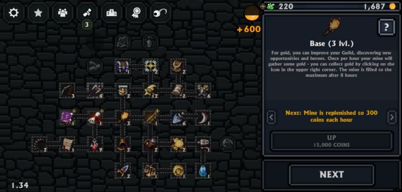The Circle of Masters then pops up. This powerful, powerful upgrade gives you the ability to restore all your health and Mana every time you complete a level. This is no doubt more expensive than the Dash upgrade, but this is all the more worth it. Imagine having completed a level and your rogue is seemingly covered in their own blood. A small, angel-like icon will appear right below your health and Mana bar. Tapping that will completely recover your rogue.