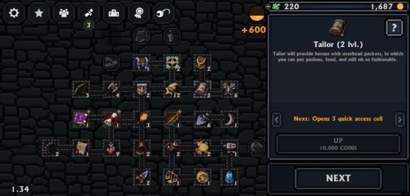 Without quick slots, you will have to open your bag every time and rummage through your inventory — it’s messy, it’s slow, it’s inconvenient. But with the Tailor, we’d like to think that maybe he might’ve sewn a couple of secret pockets into your rogues’ uniforms… Well, okay, maybe just one secret pocket on the first upgrade.