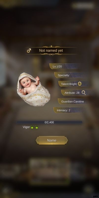 あなたとあなたの恋人が生み出す相続人は、性別がランダムであるだけでなく、ステータスと属性もランダムです。後継者が生まれたら、すぐに名前を付けて導き、好みのシーンに派遣することをお勧めします。継承者の属性を考慮して、利用可能な 4 つのトレーニング シーンのうちの 1 つがより多くの経験値を獲得し、より速い成長につながります。
