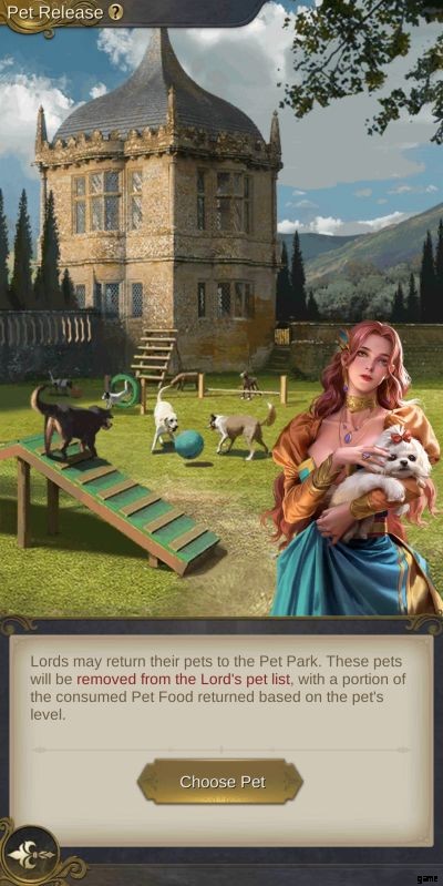 King's Choice でペット システムのロックを解除するには、最初に Outpost キャンペーンのチャプター 20 をクリアする必要があります。最初のペットは無料で入手でき、それ以降の最初のペットは有料になります。プレイヤーに新しいペットを提供する特別なイベントはまだ発生していませんが、飼育して購入する以外に無料で入手できる方法があることはかなり確信しています.領主の家のレベルに基づいて、ロイヤル ガーデン内のペット用の限られたスロットもあります。